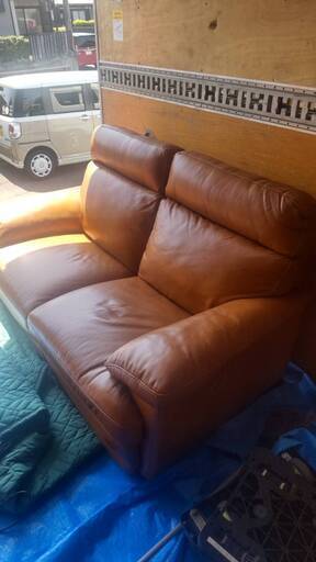 80,000円仕様【スペック】 ・色:ブラウン ・主な素材:皮革(牛革) ・サイズ(約):幅164×奥行96×高さ93cm 【座面スプリングと特長】 ・エラスティックベルト (伸びが大きく持続性があるラテックスゴムを使用し、柔らかな座り心地。 サビやきしみ音も発生しません。) 【お手入れ方法】 (専用のクリーナーでのお手入れが必要。 革は油分を失うとひび割れ(角質化)が起こりやすくなるため、4 -5ヶ月に1度はクリーナーでのお手入れが必要になります。) ・トラックの内部のため写りは悪いですが、かなり状態の良い美品です。 ・付属品は画像が全てになります。